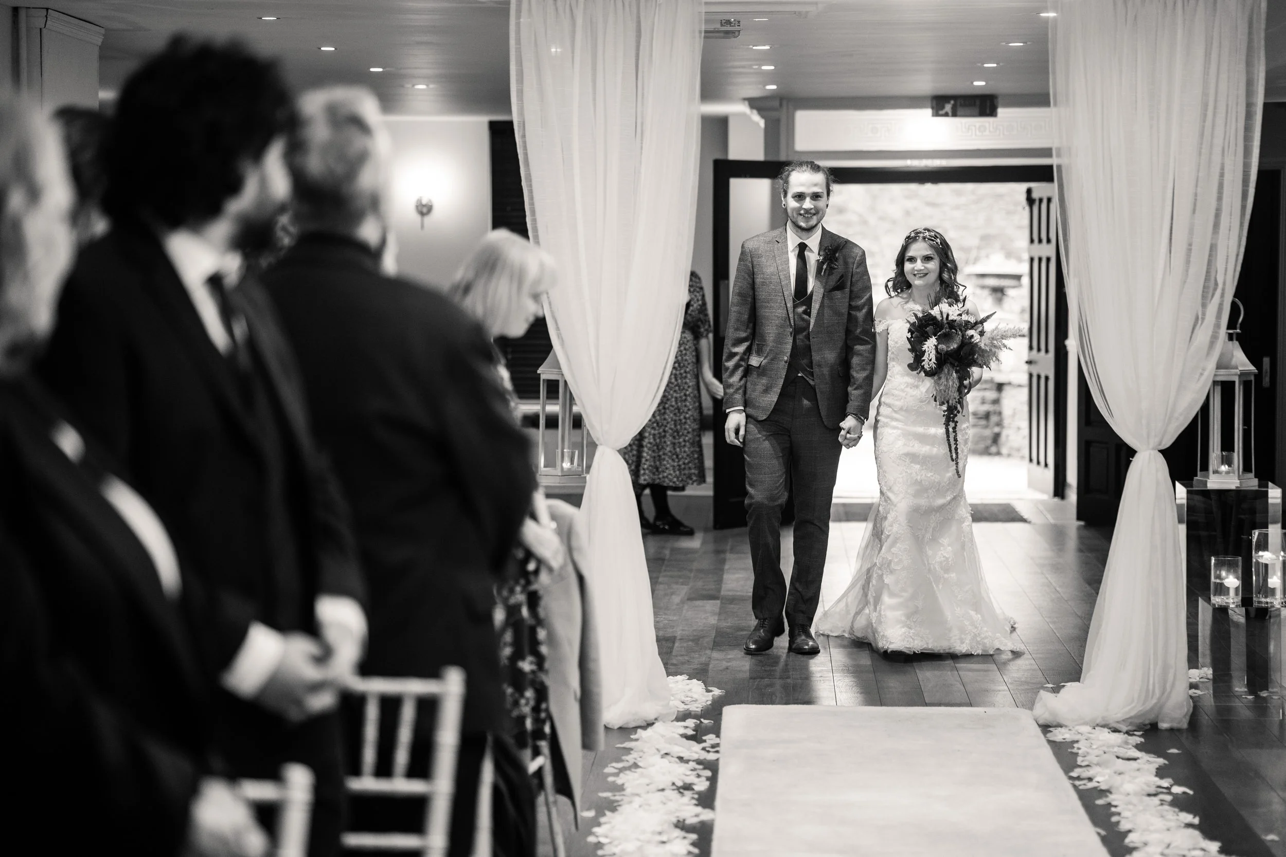 Alice & James chose to get ready and arrive together, before walking down the aisle hand in hand.
