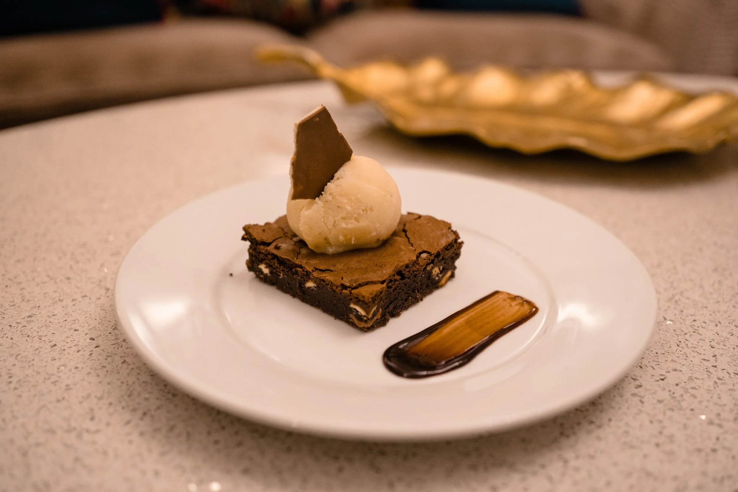 and finally, chocolate brownie and caramel ice cream or Salted caramel cheesecake and praline for dessert.