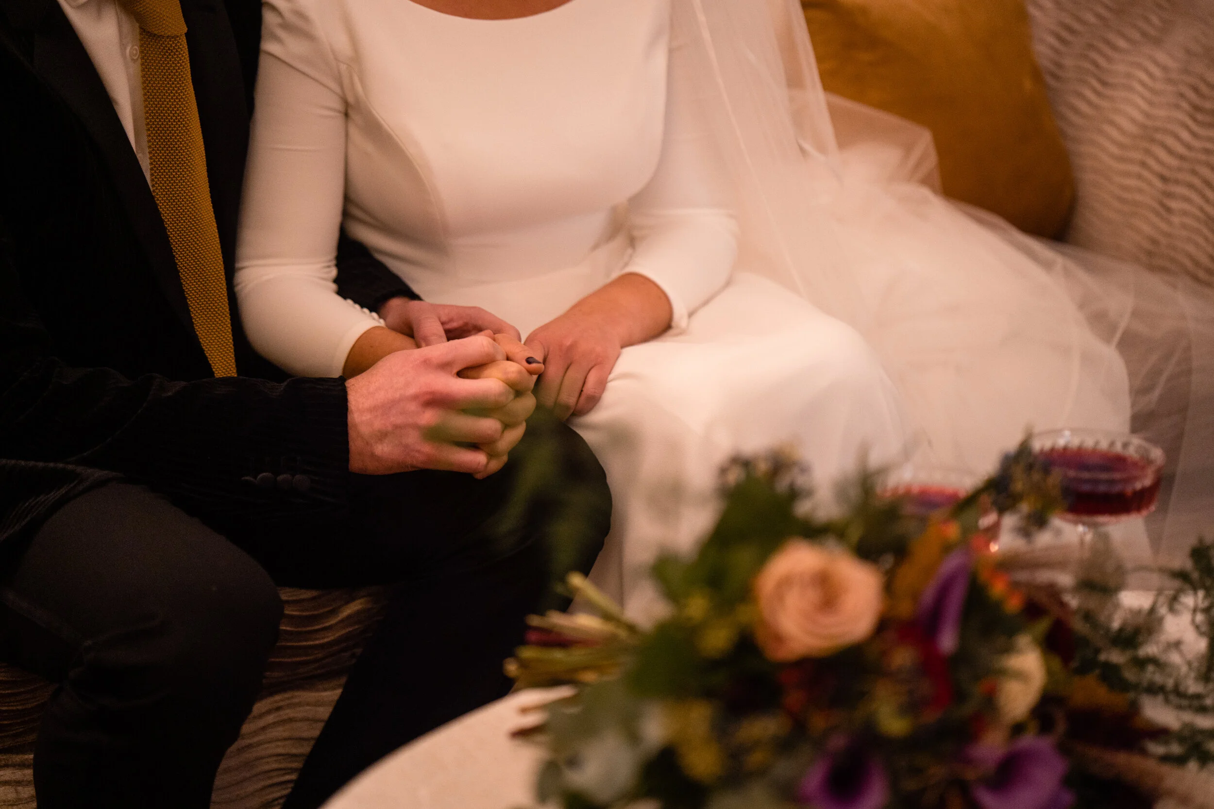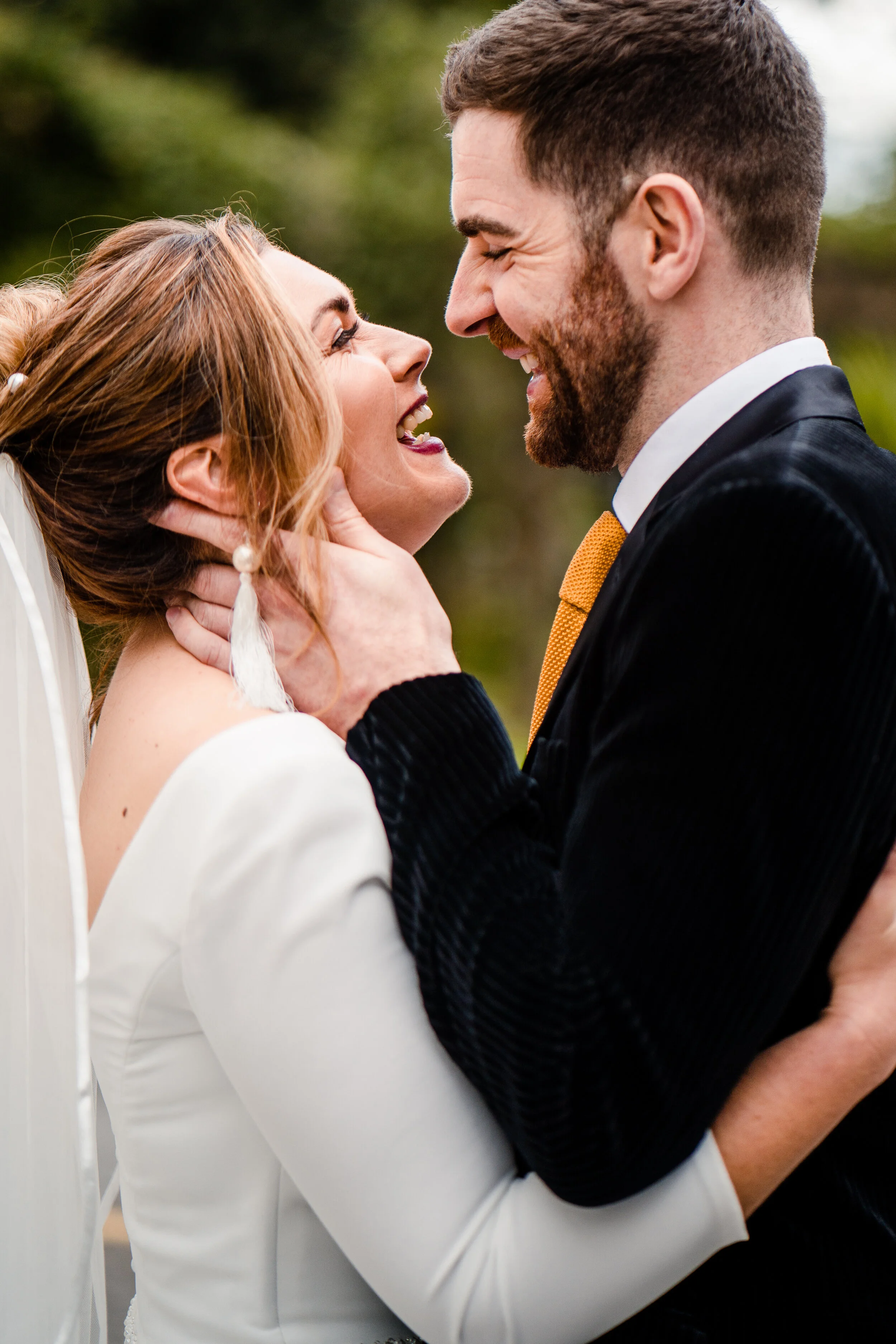 As for the Groom, Dan also had two looks. His first was a classic tux with velvet bow tie, crisp white shirt and black patent shoes. His second look was a little more modern, we chose a striped velvet suit jacket with a mustard knit tie. This jacket was gorgeous and a lovely slim fit too! Both looks were from ASOS and really complimented the brides gowns.