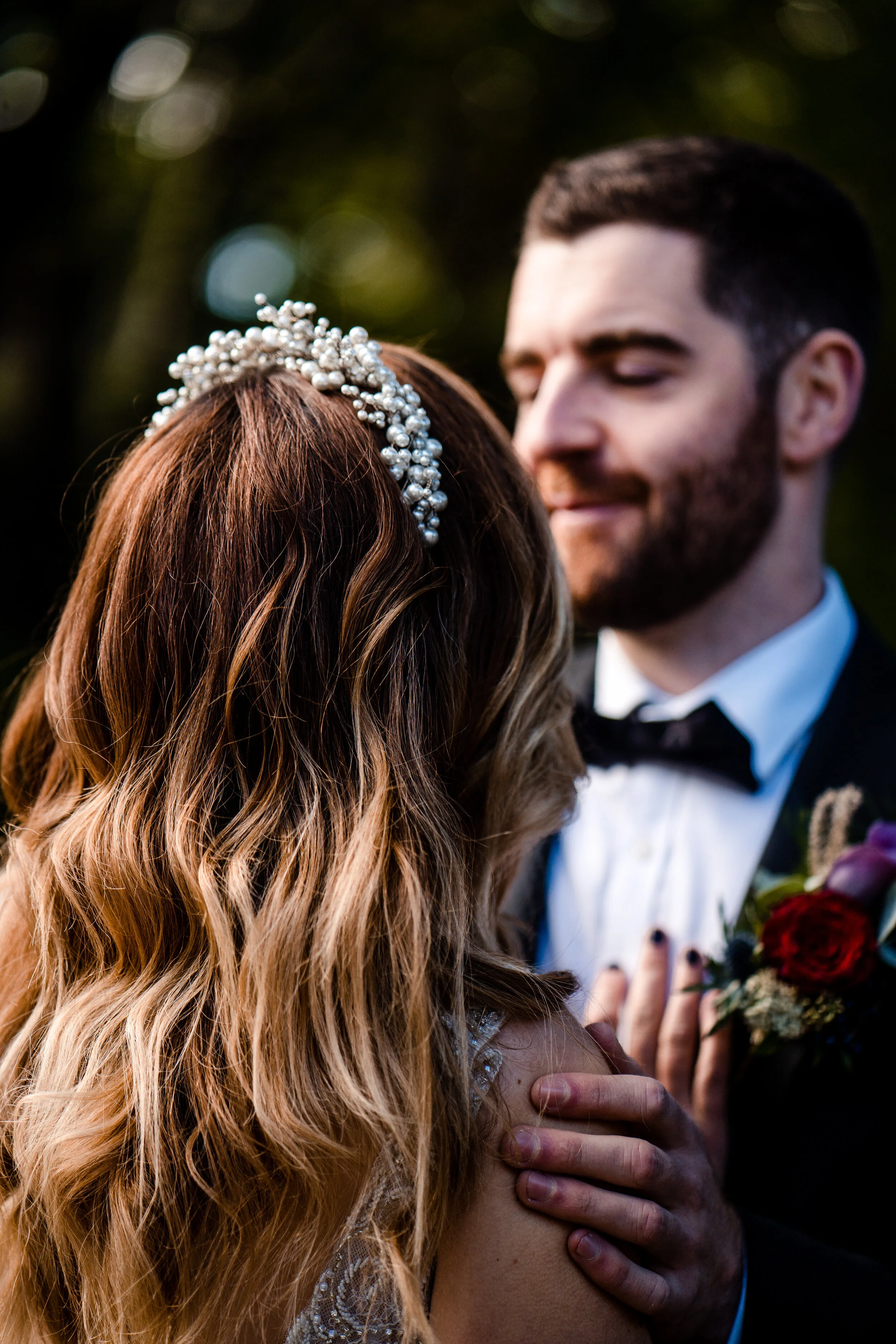 With a selection of stunning wedding dresses picked out with Lee in her store, The Bridal Lounge of Accrington, we decided to chose a few very different dresses to style. One of my favourites was a gorgeous, sleek gown that has an incredible button back with big train! It looked amazing styled with Claire’s hair in loose waves and the most perfect pearl ‘Everlasting Tiara’ from Arianna Tiaras sitting proudly on top. Make up for this look was very fresh, with dewy skin and a nude lip teamed with a beautiful rose gold, shimmer eye. The ladies from Nala & Knot perfected our visions for both hair and make up looks on the day.