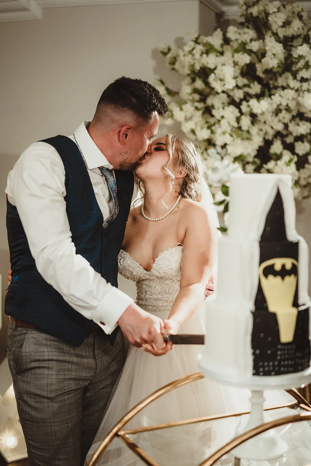 Jo from A Cake Occasion created the below masterpiece for Emma & Curtis. They had the more traditional side on view throughout the day with the batman reveal during the cake cutting!