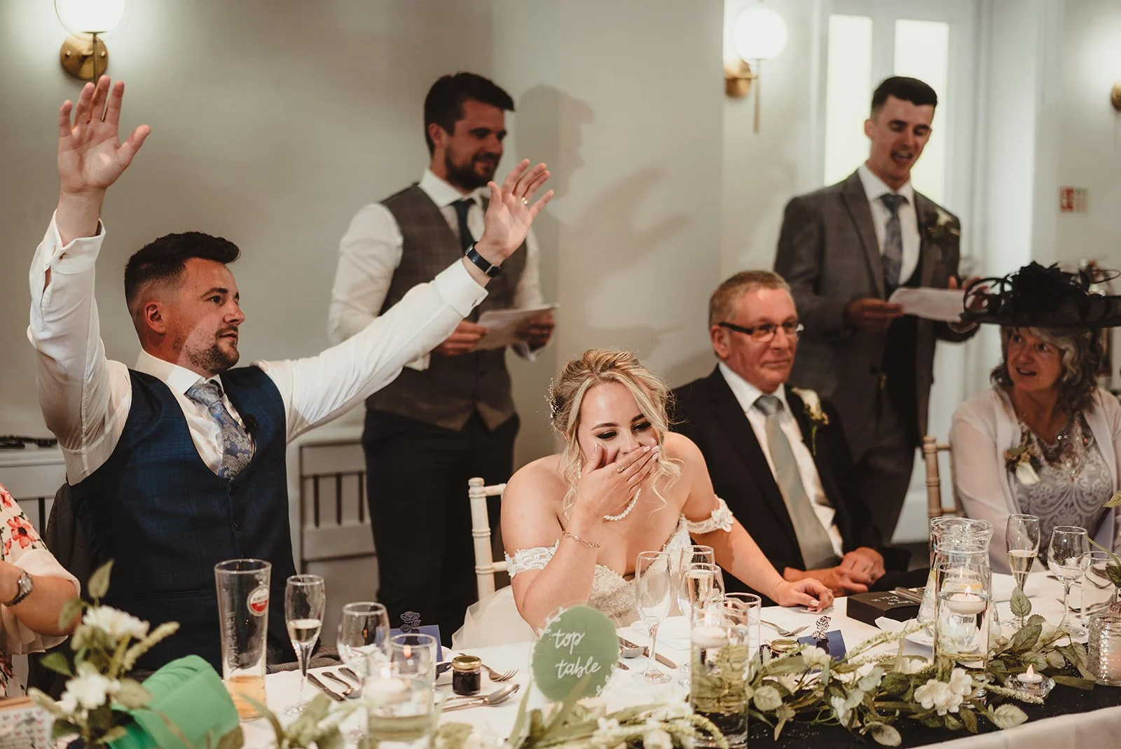 Everyone knows that speeches can get a little raucous, especially the bestman/men speech. That’s why I LOVE this photograph so much, Curtis, Emma & her parents faces are a picture. I really wish I can remember what is was in response to but I am thinking it wasn’t fully PG!