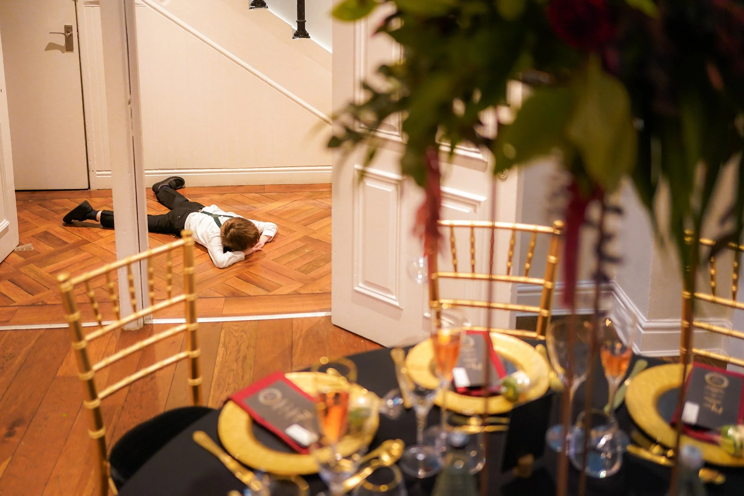 With Olivia and Paul the parents of four young boys, we knew there’d be mischief on their special day; but it looks like this little one tired himself out even before the wedding breakfast!