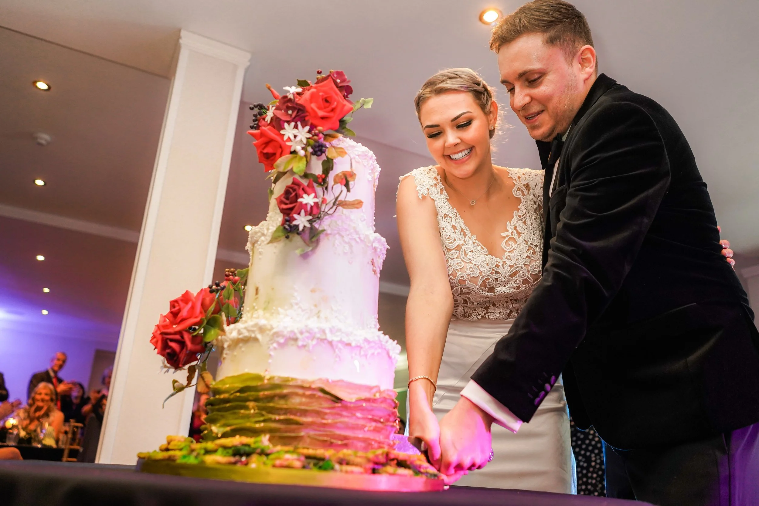 Their stunning cake was by Suzanne Thorp at The Frostery and guests danced along to live music played by a modern swing band.