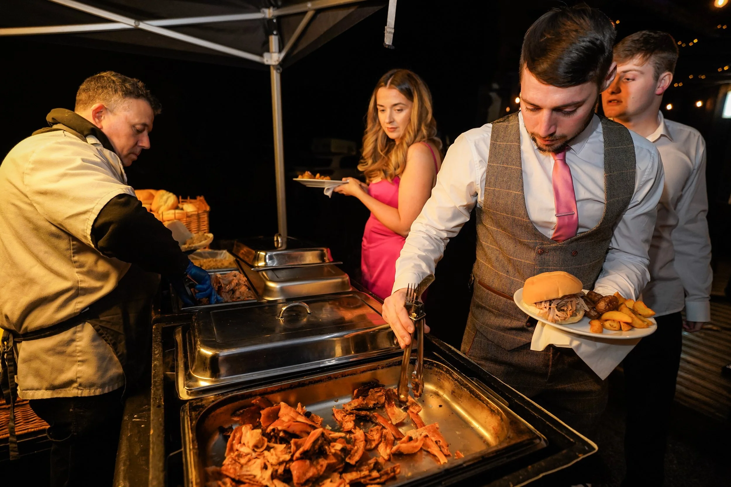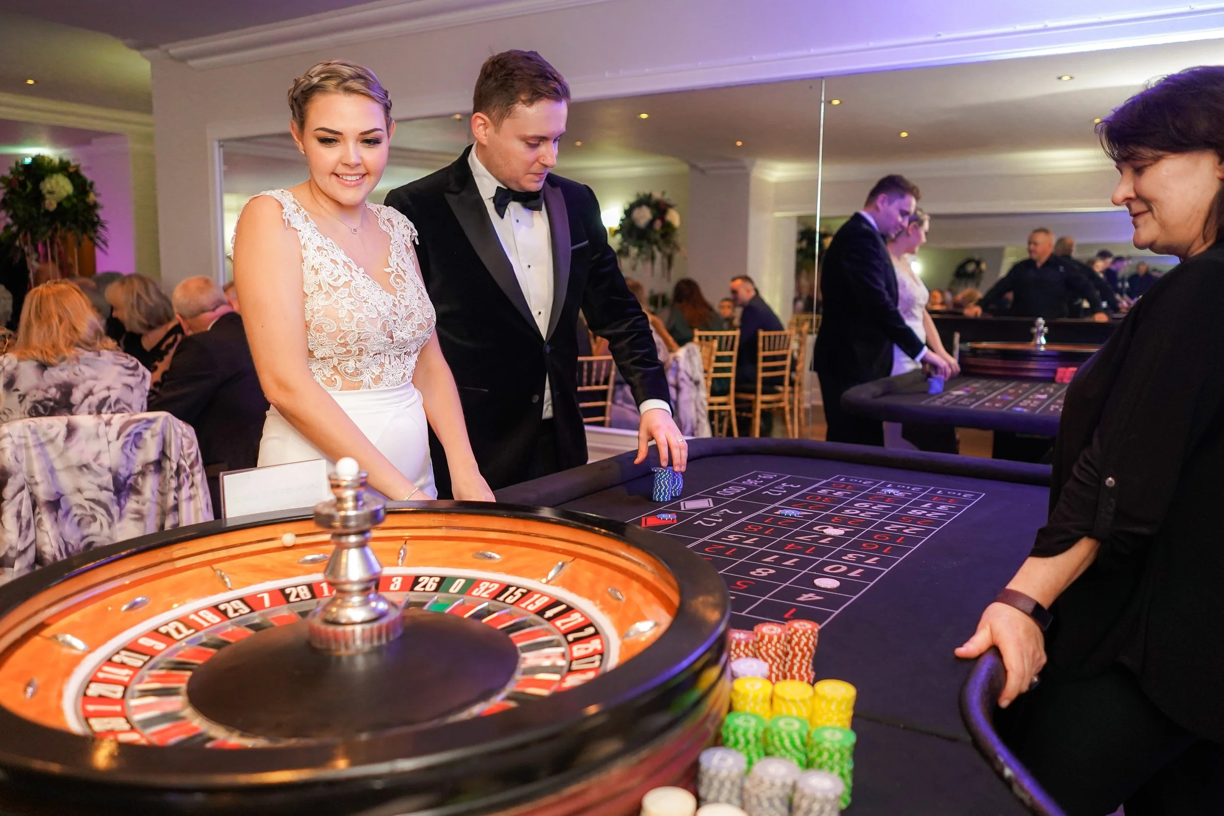 Olivia and Paul’s evening reception was all about fun and guests young and old were catered for. With a sweetie table and giant games in the lounge for the little ones and casino table and a hog roast for the grown ups.