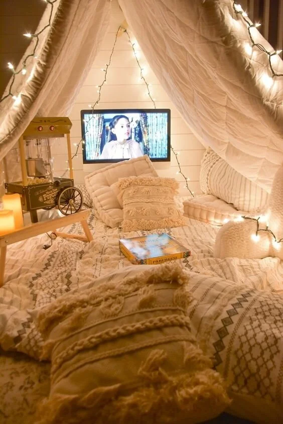 Okay, so we are not talking about just throwing on a movie at 10pm. No no no, we mean comfy dens, fairy lights, mountains of popcorn and hours of films.